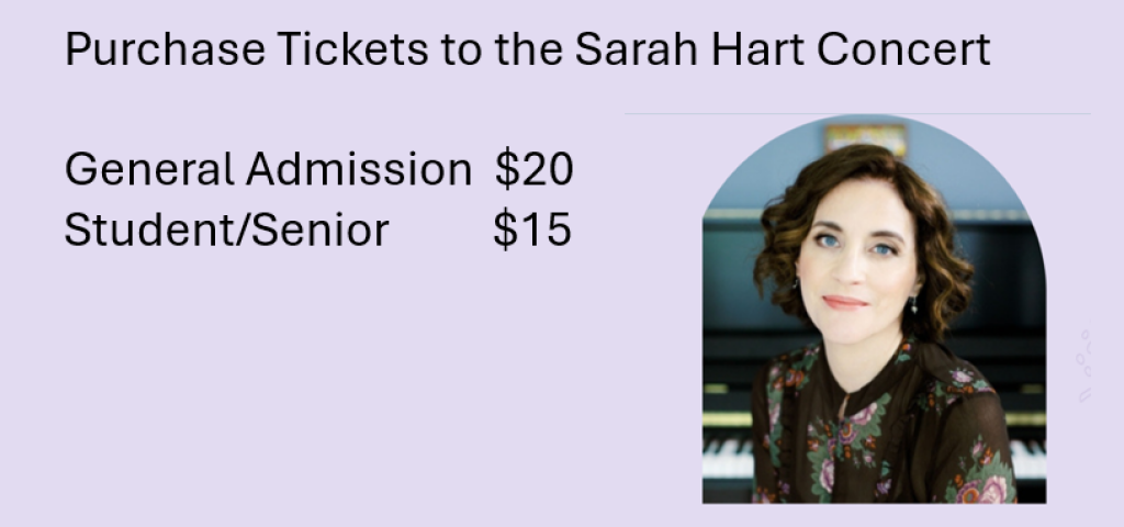 Purchase tickets for the November 1 Sarah Hart Concert, 7-9 PM at St. Catherine of Siena